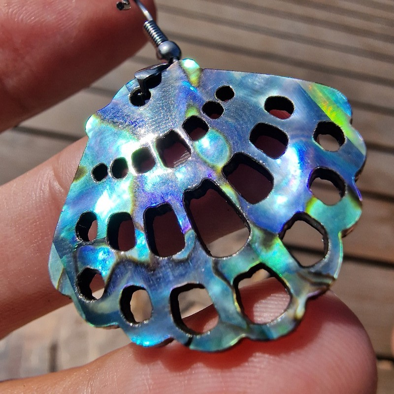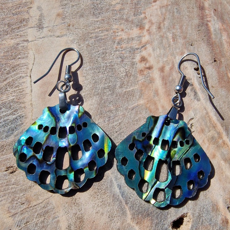 Abalone,más néven pávakagyló fülbevaló, nagyon könnyű és gyönyörű a fényjátéka.