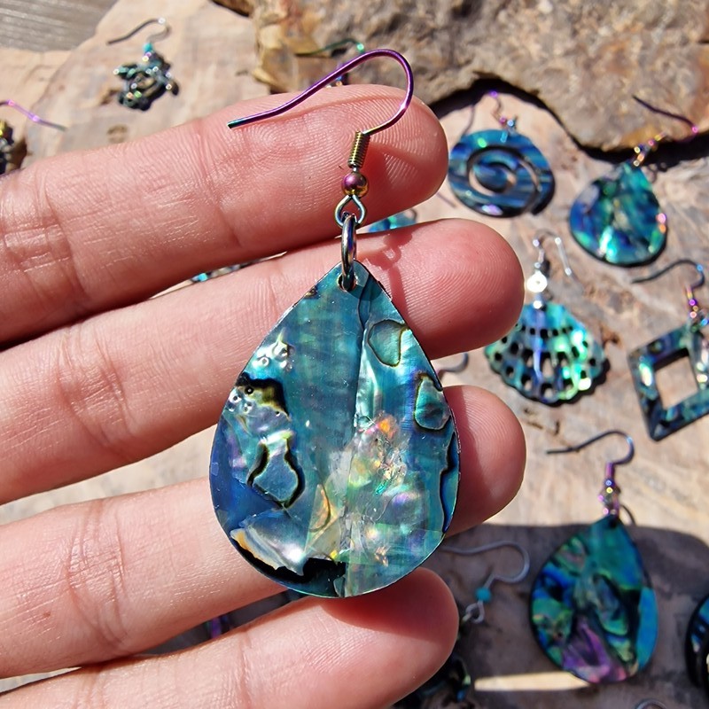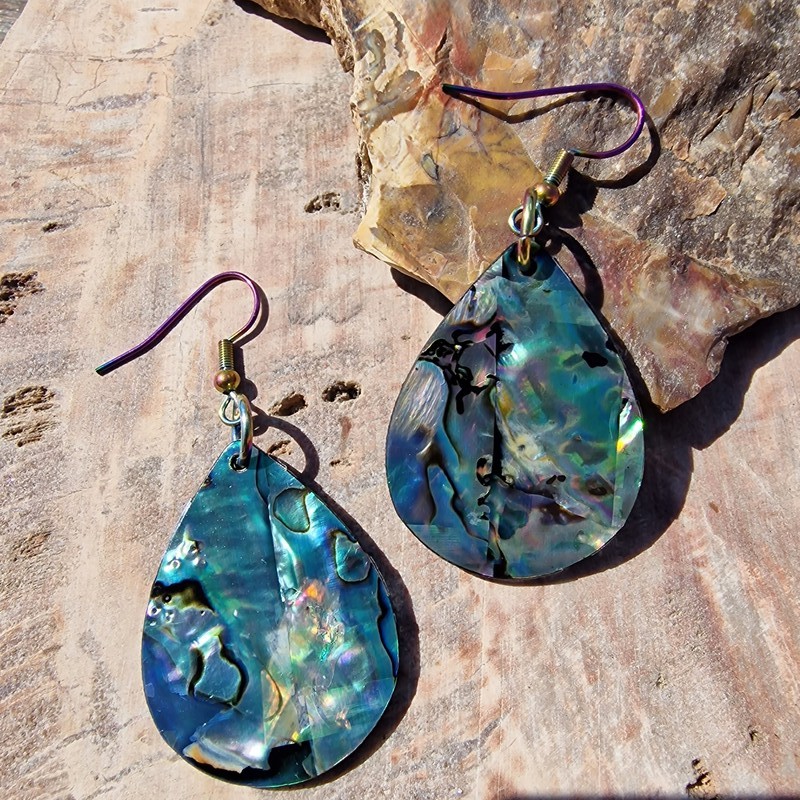 Abalone,más néven pávakagyló fülbevaló, nagyon könnyű és gyönyörű a fényjátéka.