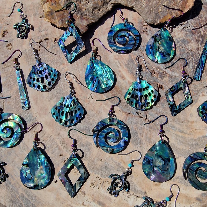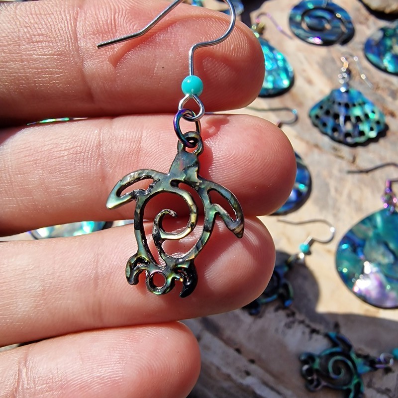 Abalone,más néven pávakagyló fülbevaló, nagyon könnyű és gyönyörű a fényjátéka.
