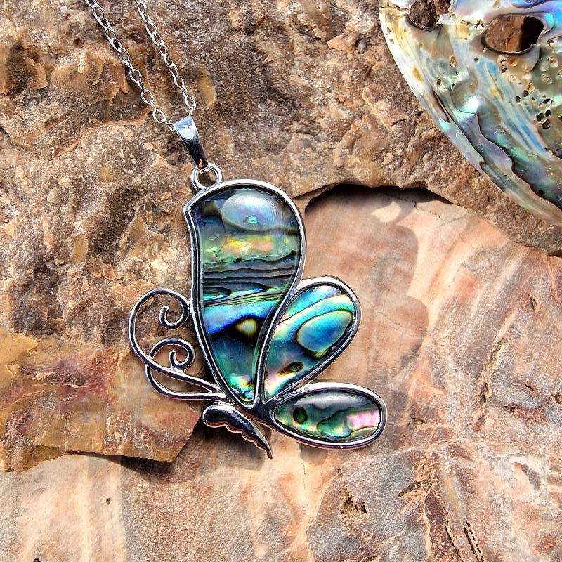 Abalone kagyló pillangó nyaklánc – könnyed elegancia, ragyogó részletek