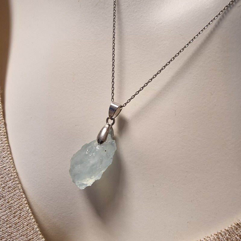Nyers akvamarin ásvány medálos nyaklánc, nemesacél láncon.