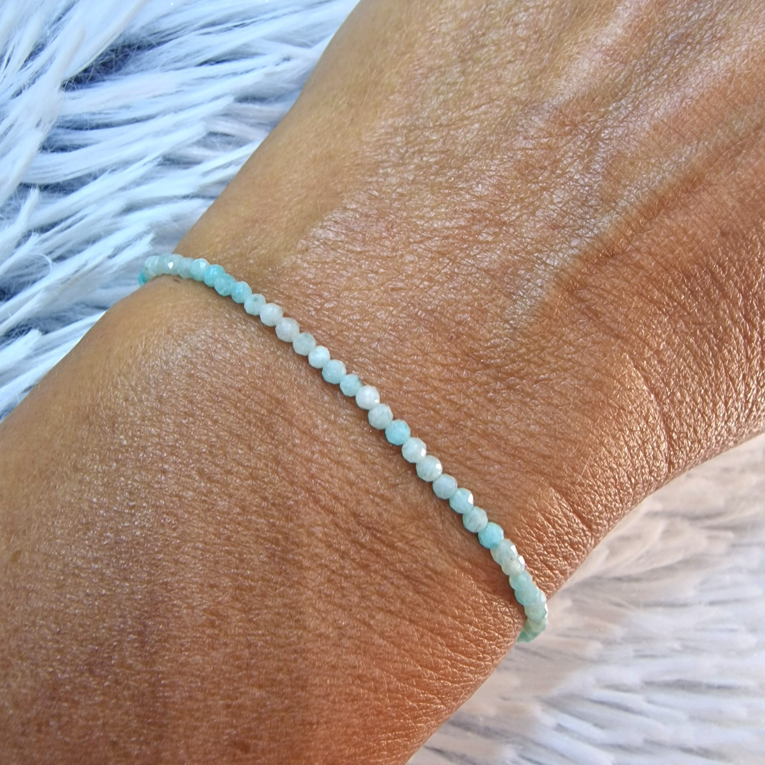 Ez a 2 mm-es amazonit karkötő tökéletes kiegészítője lehet bármely ékszerkollekciónak, ha szereted a természetes, visszafogott, mégis különleges darabokat.