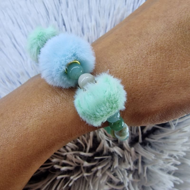 Amazonit ásvány karkötő – pihe-puha pomponokkal