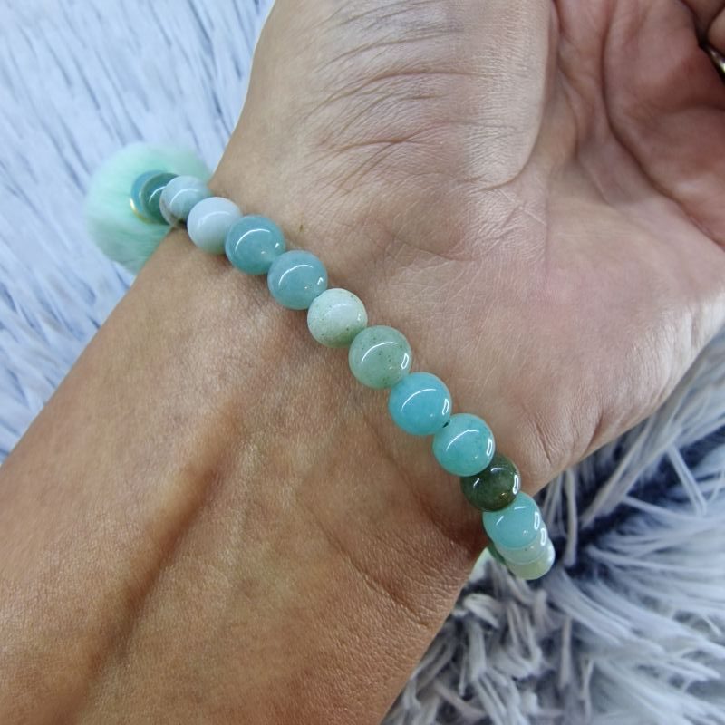Amazonit ásvány karkötő pompomos