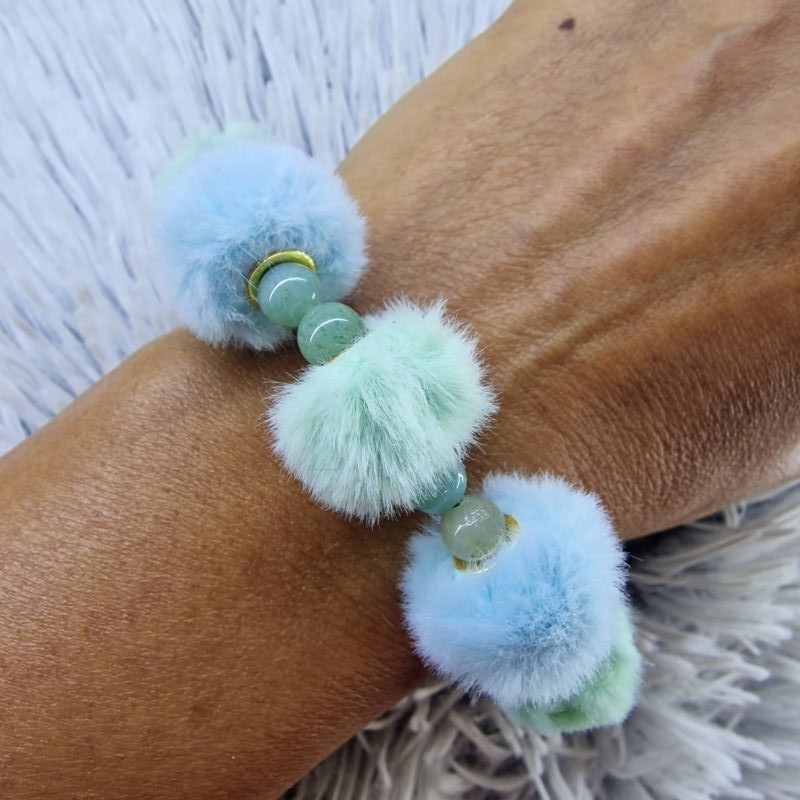 Amazonit karkötő pompomokkal