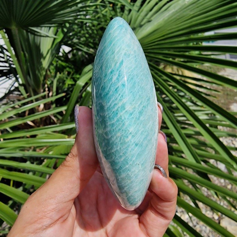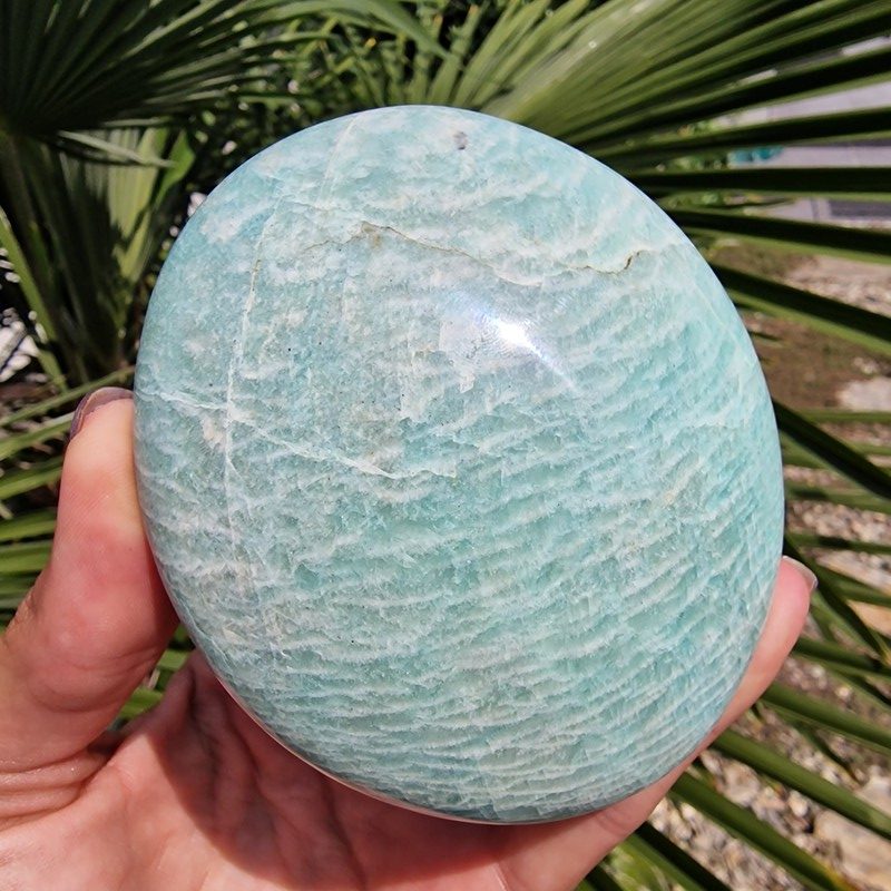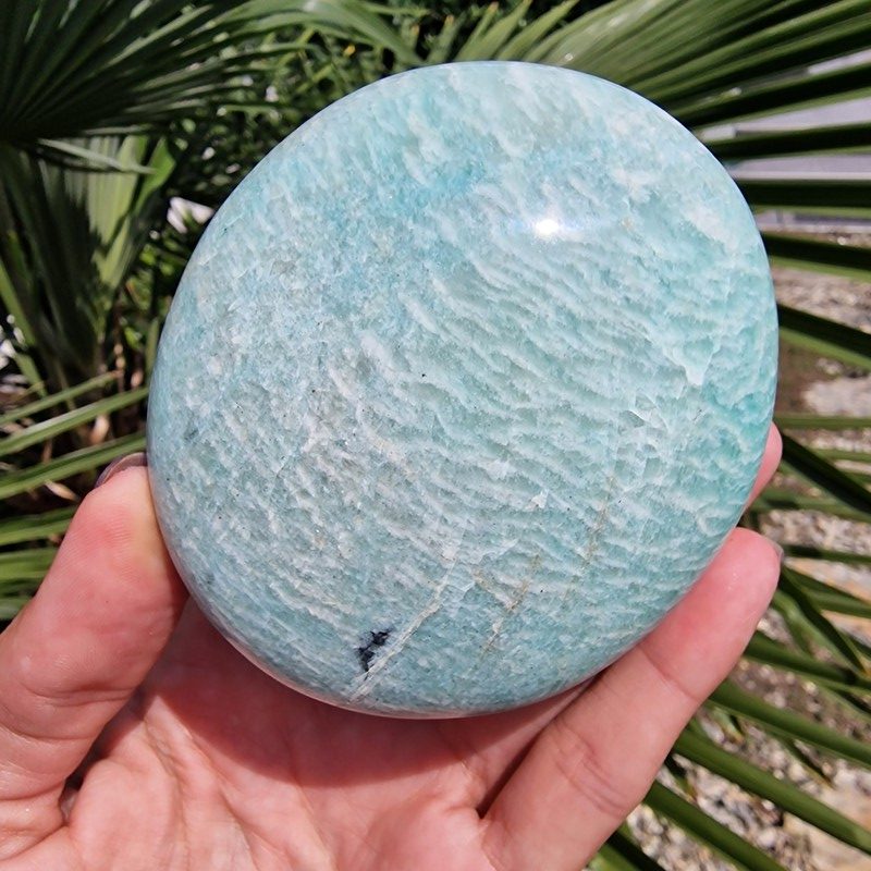 Nagy, amazonit ásvány lencse Madagaszkárról. Megtekinthető videón Instagram oldalunkon.
