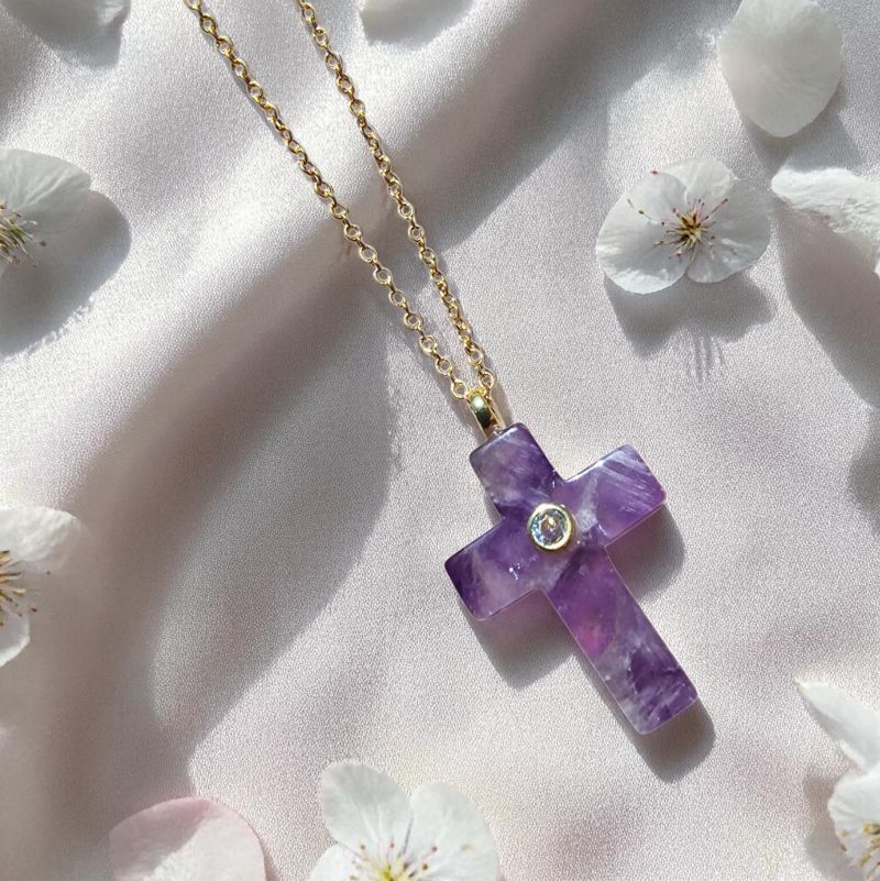 Az ametisztet sokan a nyugalom, a belső harmónia és a tiszta gondolatok ásványaként ismerik. Kereszt formával párosítva ez a nyaklánc különösen személyes hangulatú darab lehet: egyszerre hordoz elegáns ékszerértéket, spirituális jelentést és kifinomult nőies kisugárzást. Ajándéknak is szép választás lehet annak, aki szereti az ásvány ékszereket, a lila árnyalatokat és az elegáns, nem hétköznapi kiegészítőket.