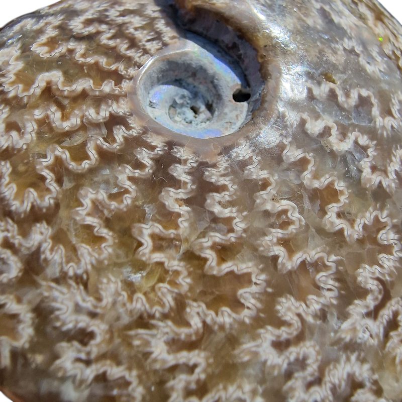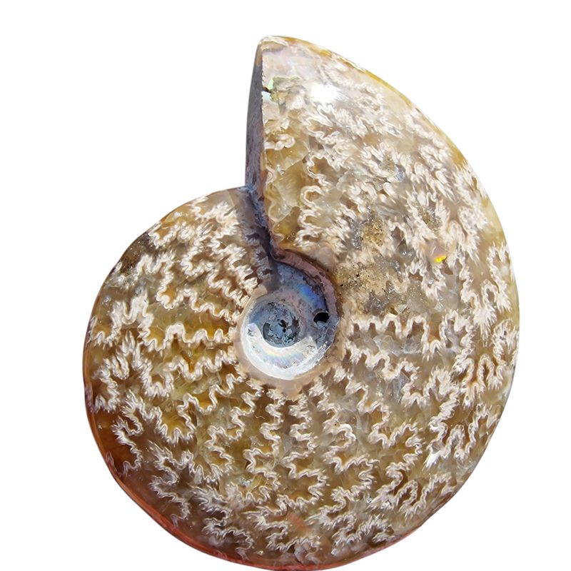 Az ammonitesz fosszíliák több mint 65 millió évvel ezelőtt élt tengeri élőlények megkövült maradványai. Ez a különleges darab gyönyörű, természetes mintázattal és fényjátékkal rendelkezik, mely egyedülálló dekorációvá, gyűjteményi darabbá vagy spirituális eszközzé teszi.