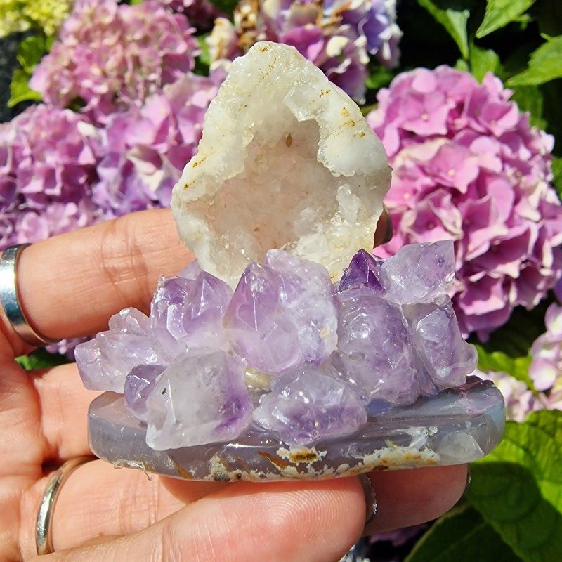 Achát ásvány lapon kristály geóda és ametiszt ásványok.