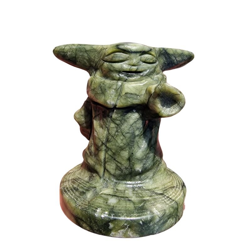 🧙‍♂️ Baby Yoda szobor – faragott jáde ásványból