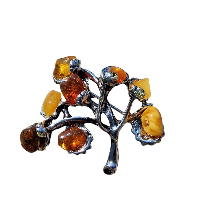 • Valódi borostyán kövekkel díszített bross / kitűző