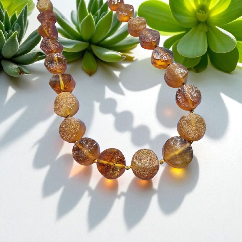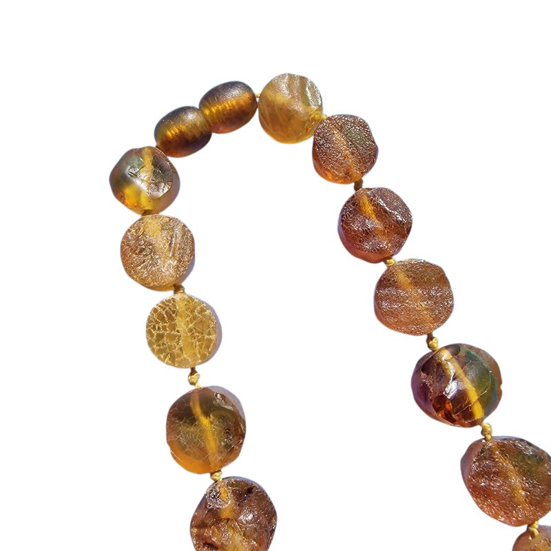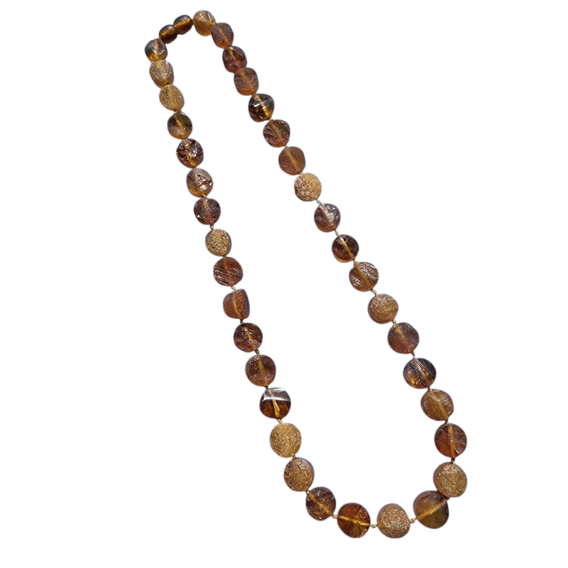 Balti-tengerből származó, borostyán nyaklánc. Mattított egyik oldalán rusztikusra hagyva, nagyon szép, kifinomult nyaklánc.