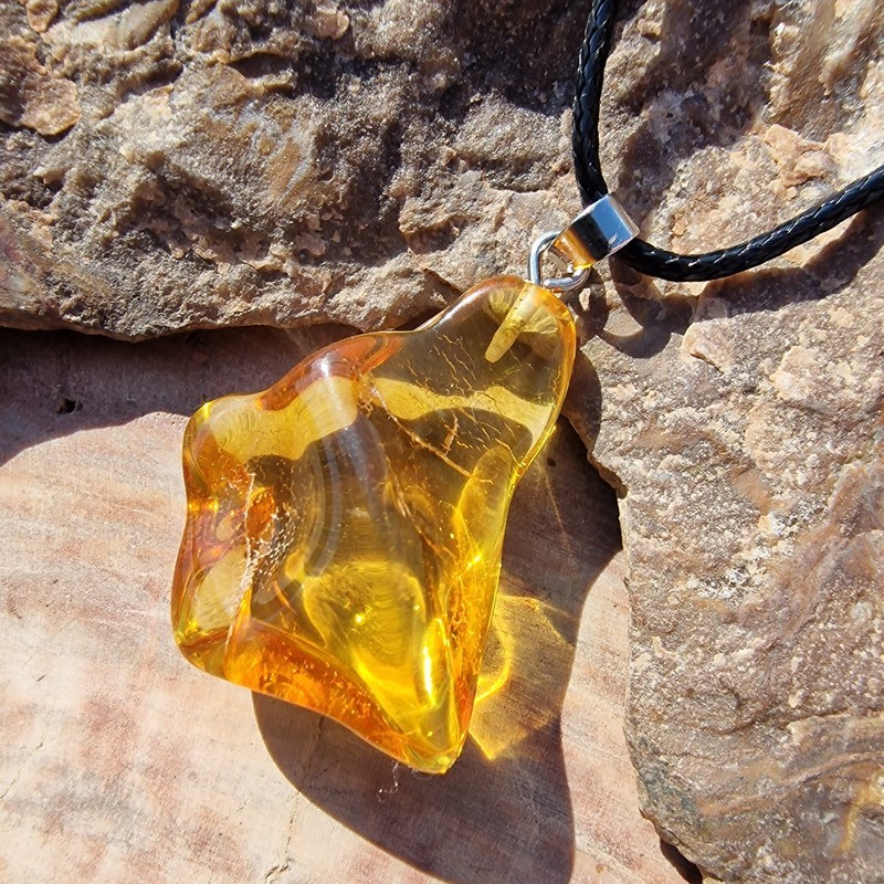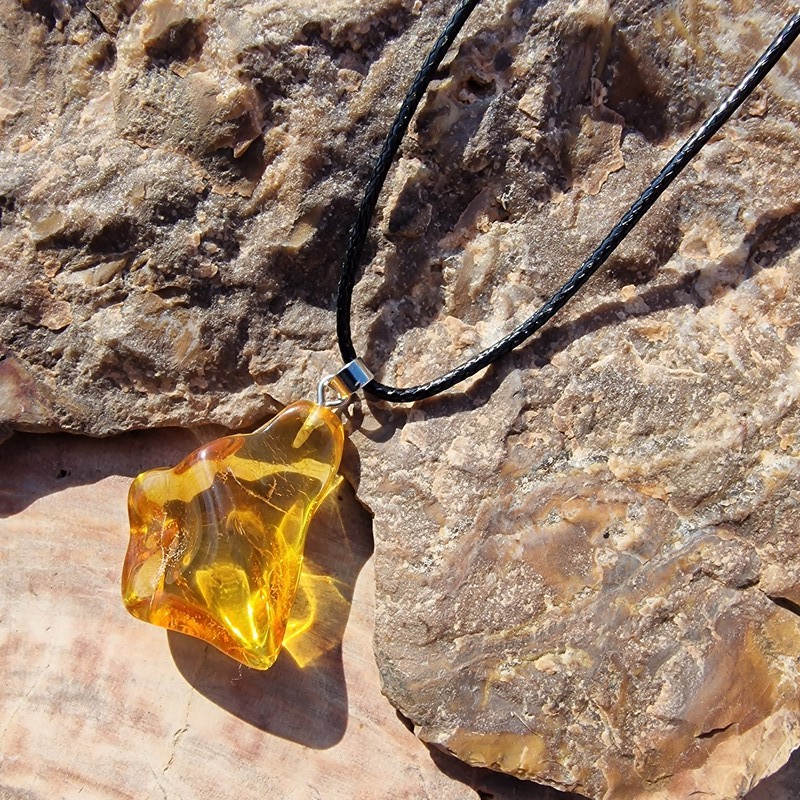 • Anyag: valódi borostyán medál, fekete műbőr szál