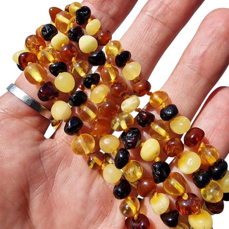 Balti-tengerből származó, borostyán nyaklánc babáknak.