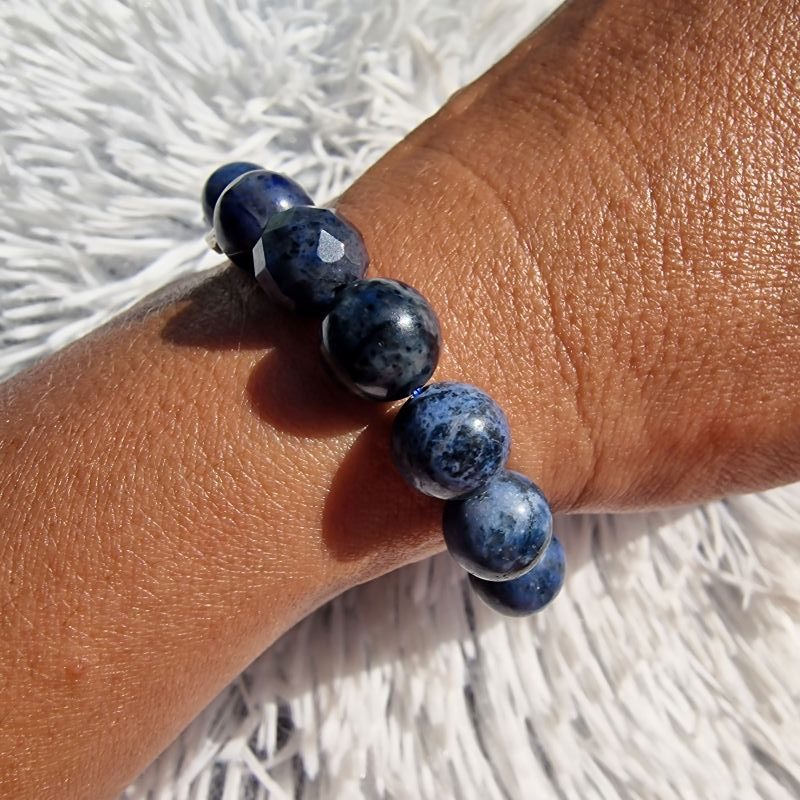 Dumortierit ásvány karkötő – 10 mm-es gyöngyökkel, fazettált díszítéssel