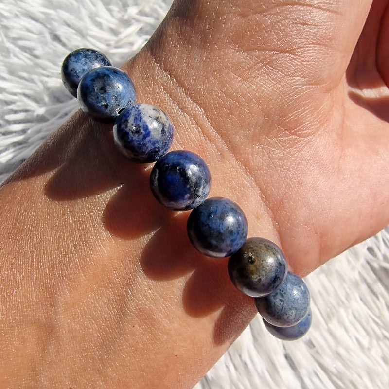 Ez az elegáns dumortierit ásvány karkötő különleges megjelenésével és karakteres kék árnyalataival tökéletes választás a természetes ásvány ékszerek kedvelőinek. A karkötőt 10 mm-es dumortierit gyöngyök alkotják, amelyeket 2 db fazettált csiszolású gyöngy tesz még látványosabbá. A csiszolt felület finoman csillog a fényben, így különleges kontrasztot ad a sima golyók mellett.