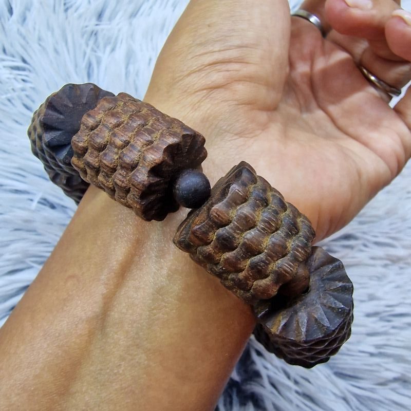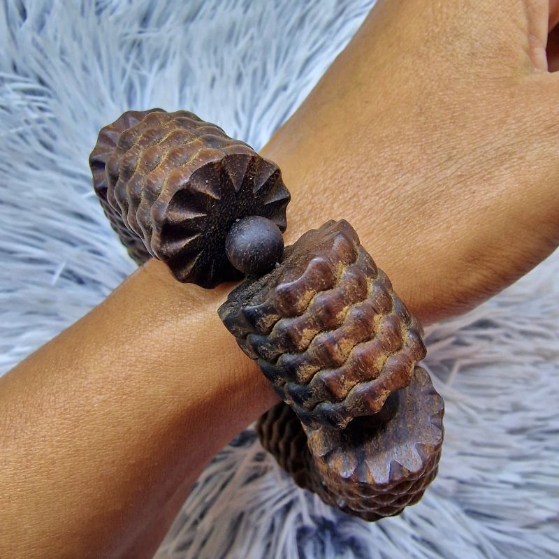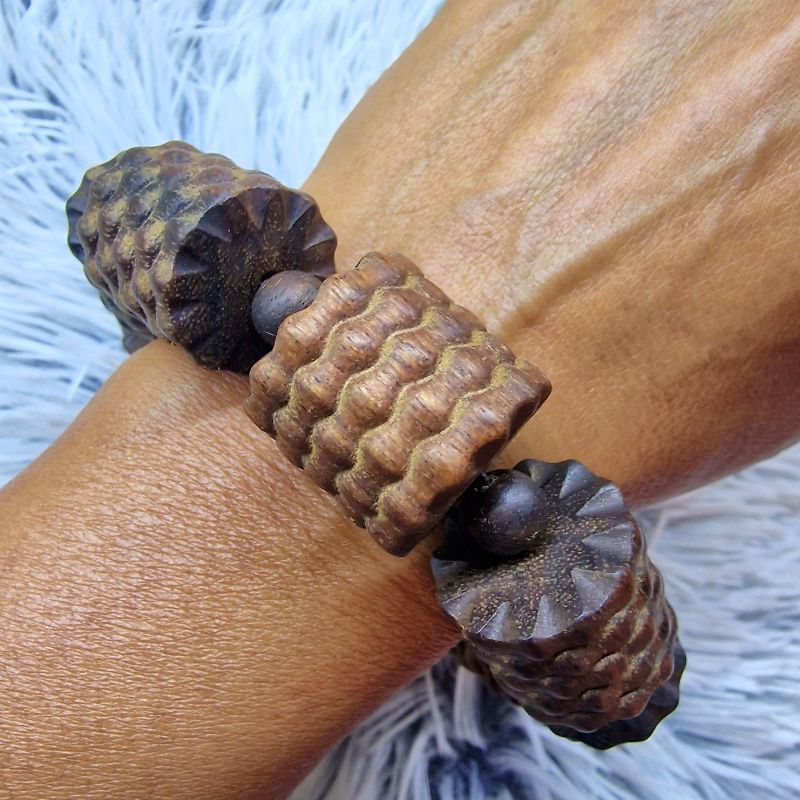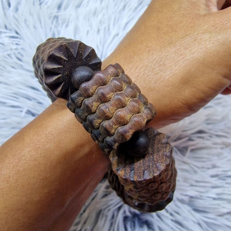 Extra méretű fa karkötő – egzotikus, texturált felülettel