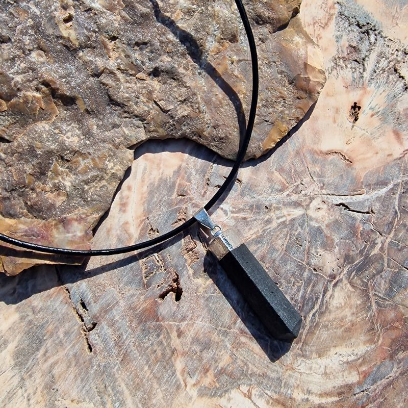 Mattított fekete turmalin ásvány bőrszálon – erőteljes védelem letisztult formában