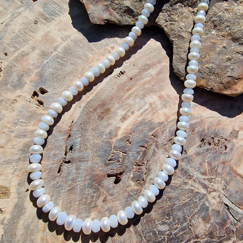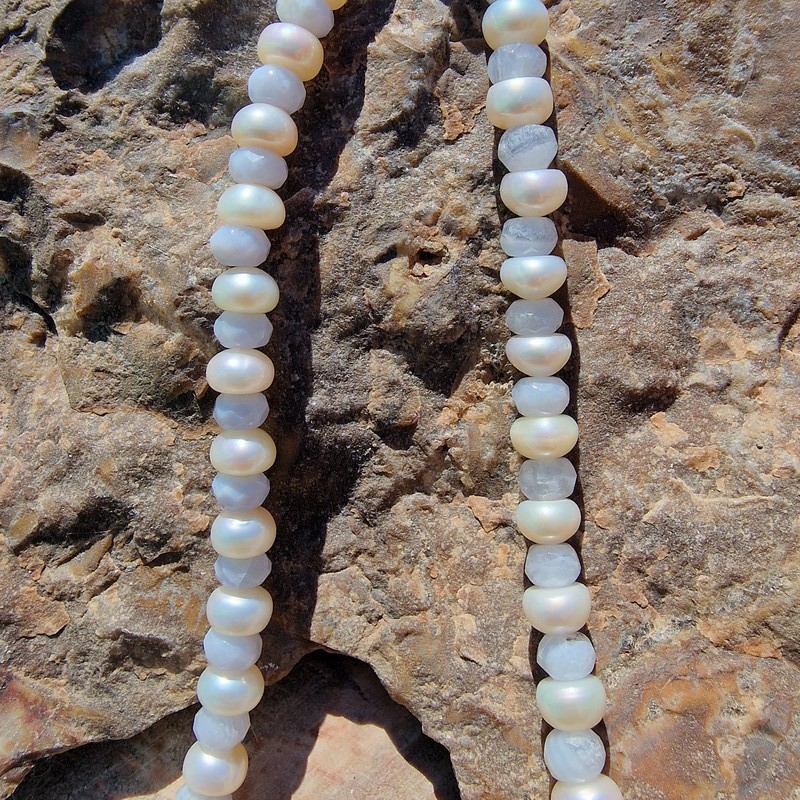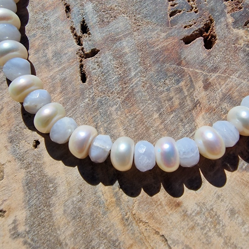 Gyöngy nyaklánc kalcedonnal