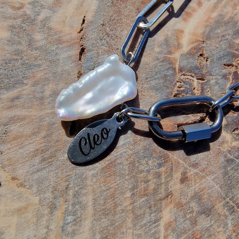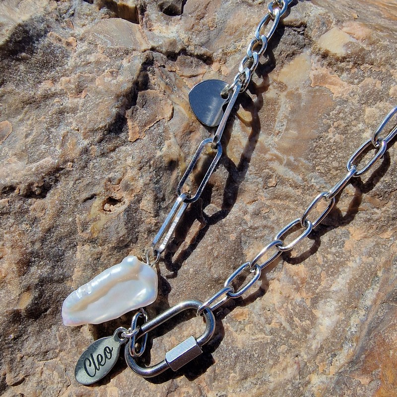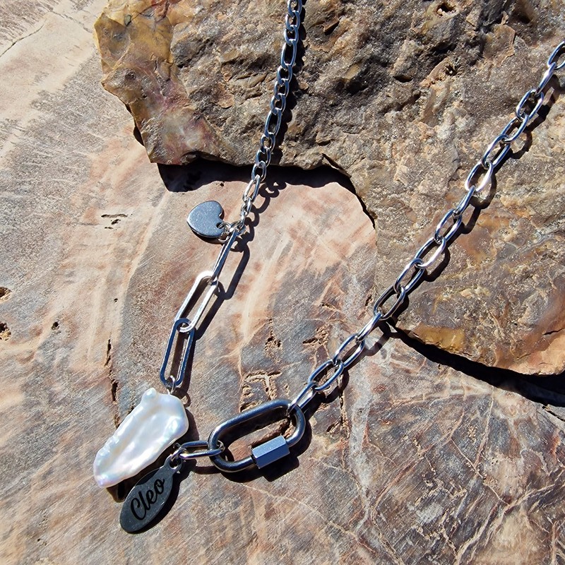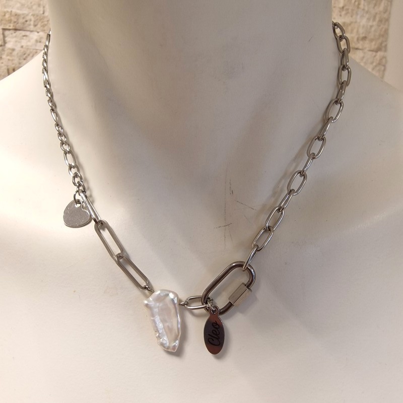 Édesvízi tenyésztett gyöngy díszítésű nemesacél nyaklánc.