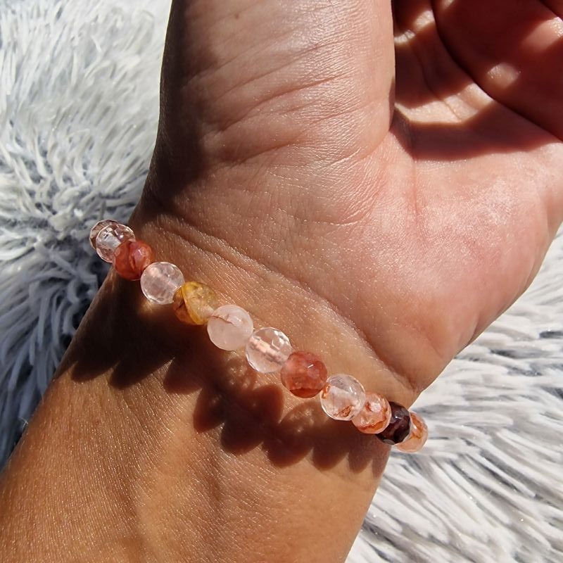 Fedezd fel a 6 mm-es hematoid kvarc karkötő különleges energiáját és természetes szépségét! Ez az elegáns, fazettált ásvány karkötő meleg vöröses–narancsos árnyalataival és egyedi mintázatával igazán különleges darab, amely egyszerre divatos kiegészítő és spirituális ékszer.