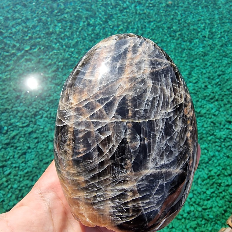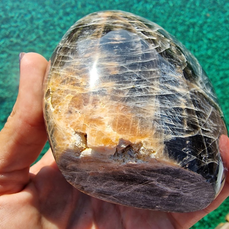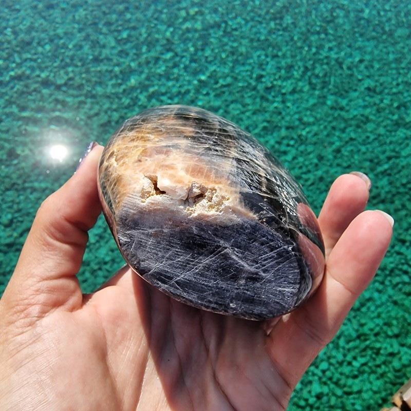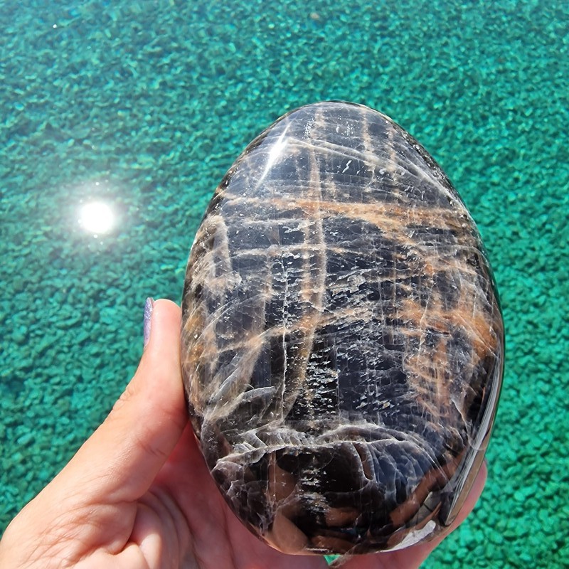 Fekete holdkő ásvány freeform, Madagaszkárról. Megtekinthető videón Instagram oldalunkon.