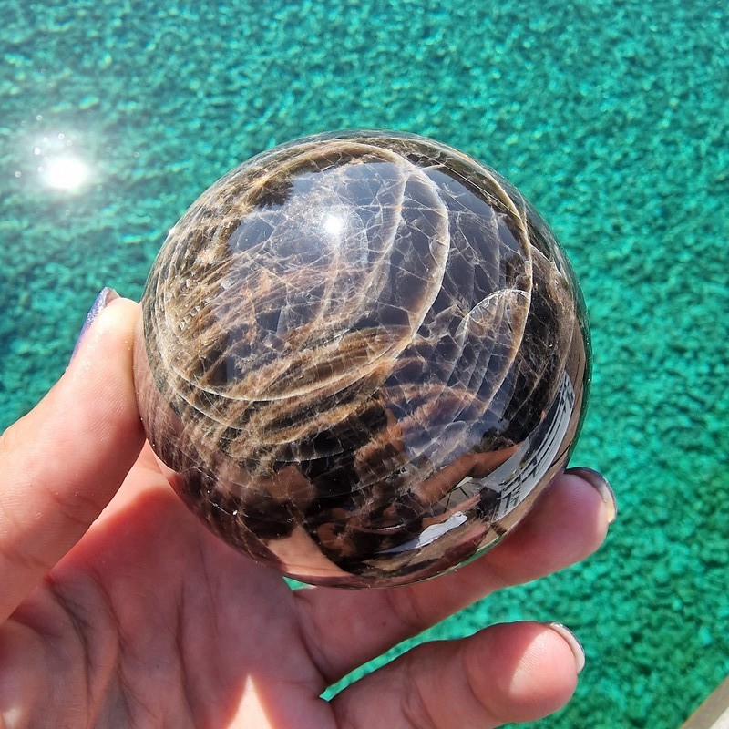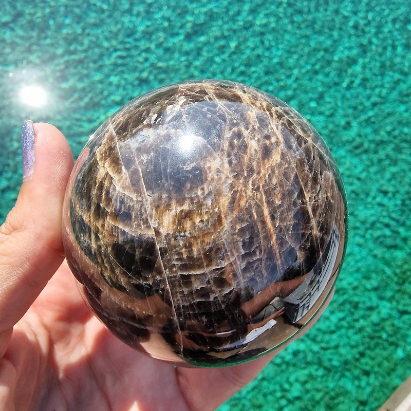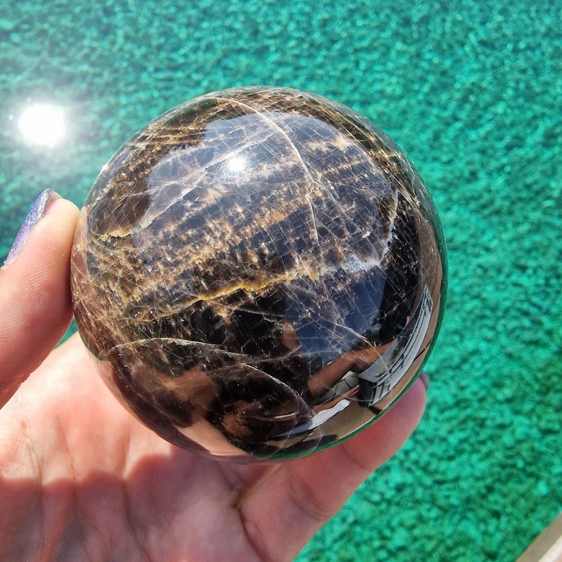 Fekete holdkő ásvány golyó Madagaszkárról. Amennyiben nagy, exkluzív ásványt szeretnél, keress nyugodtan emailben, mert nem kerülnek fel a webshopba.