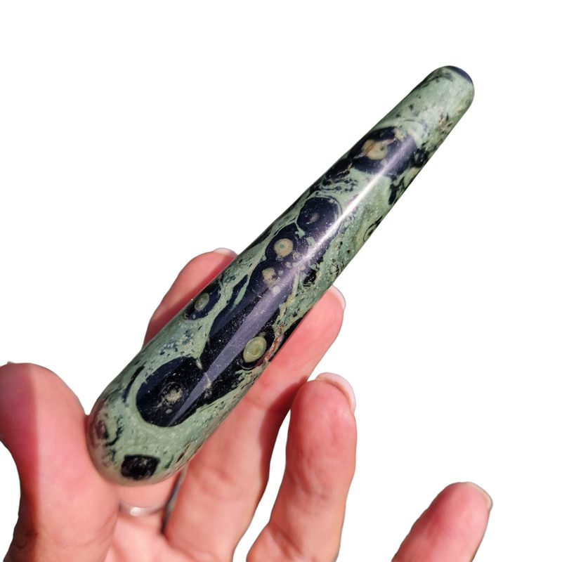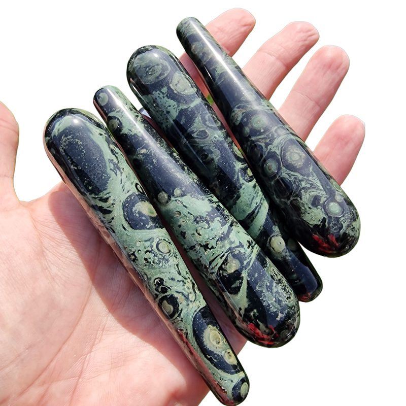 Természetes kambaba jáspis ásványból készült masszírozó rúd, kb. 10,5 cm hosszú. Kíméletes, mégis hatékony masszázs eszköz otthoni használatra. Ideális a test izomzatának ellazítására, a vérkeringés serkentésére és a stressz oldására.