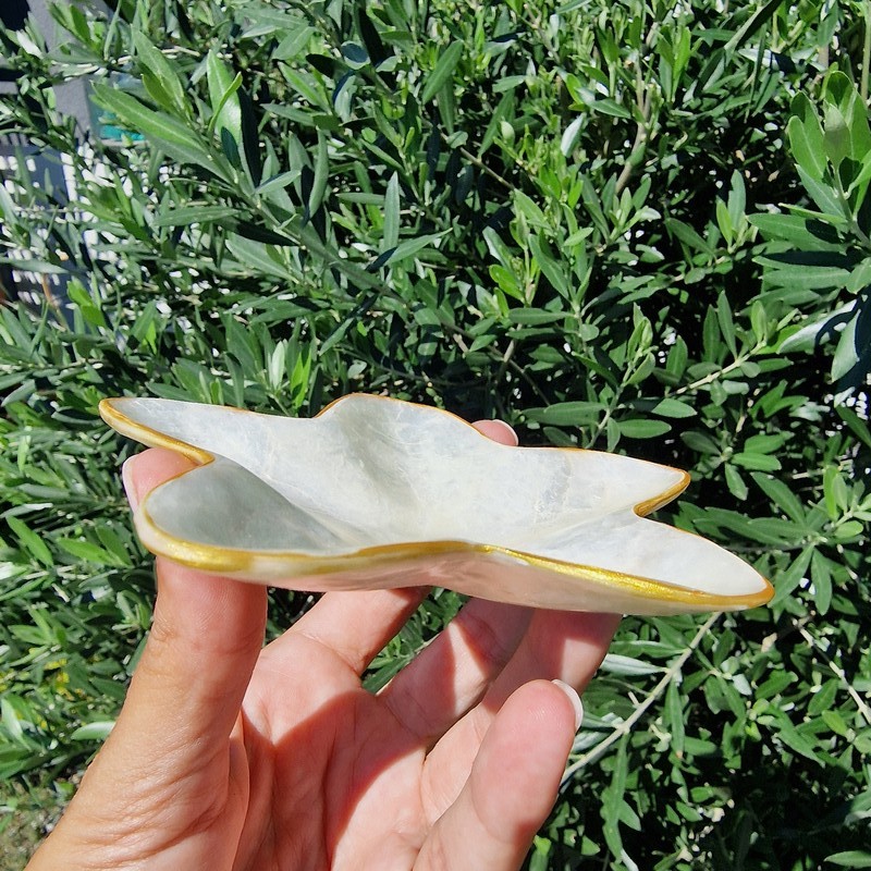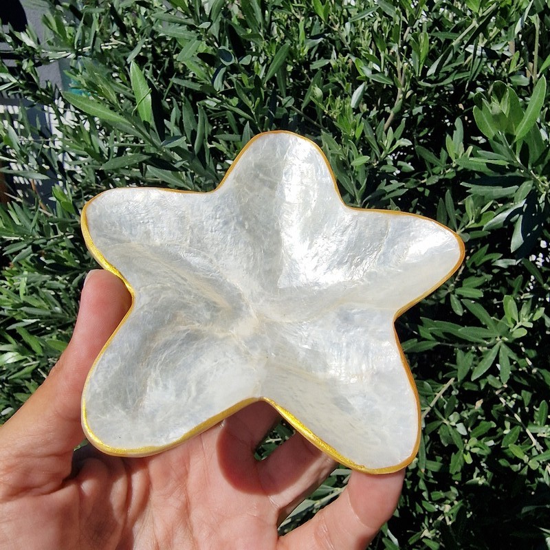 Egyedi, kézzel válogatott Baliról származó kagyló tál, amely különleges hangulatot visz otthonodba. A természetes kagylókból készült dekoratív tál nemcsak praktikus kiegészítő, hanem stílusos dísztárgy is. Használható ékszerek, apróságok, kulcsok tárolására, vagy akár önmagában is elegáns lakásdekorációként.