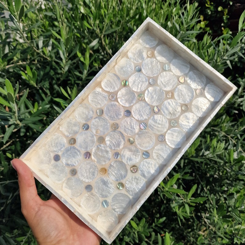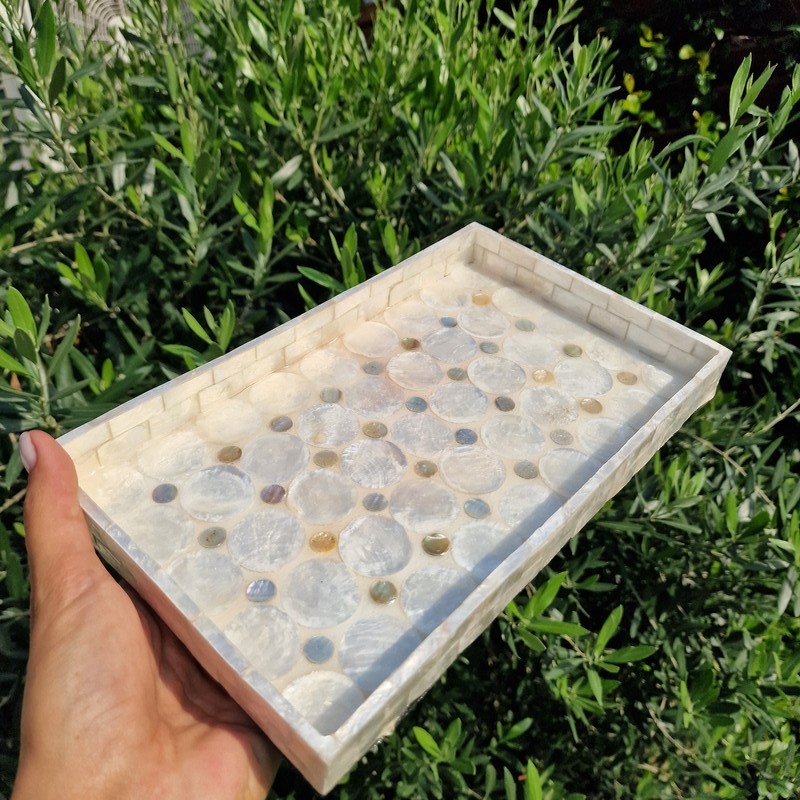 Különleges és egyedi kagyló tálca Baliról, amely a természet szépségét és az egzotikus balinéz kézművességet hozza el otthonodba. A kézzel készített tálca valódi kagylóból készült, így minden darab teljesen egyedi mintázattal és színárnyalatokkal rendelkezik.