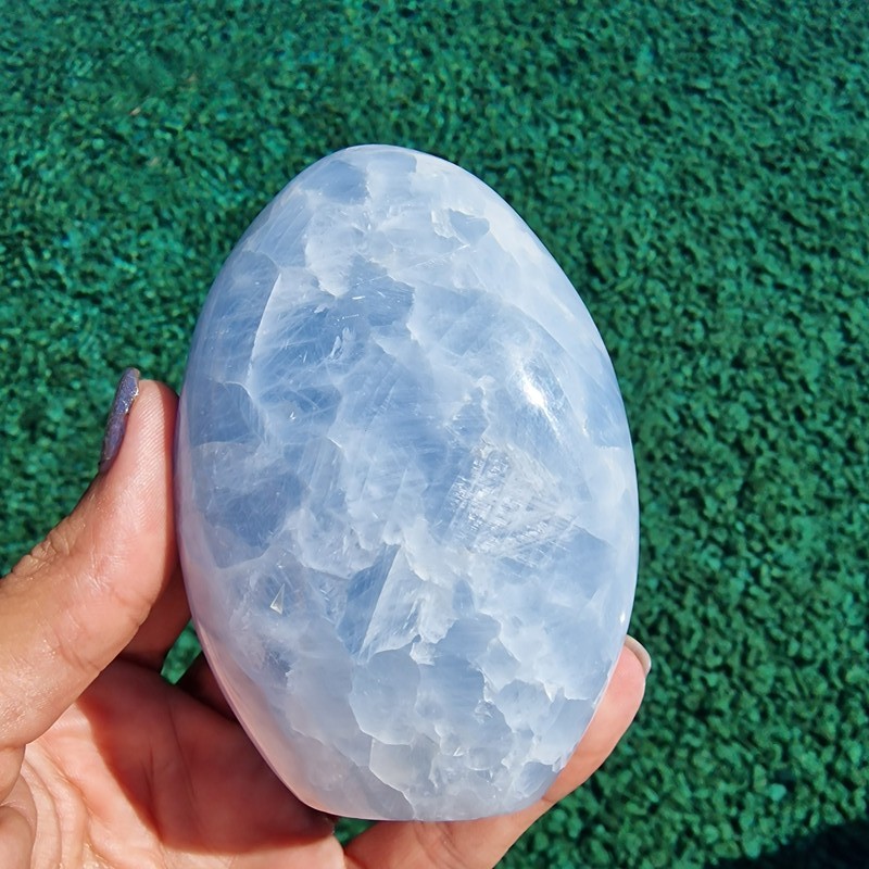 A kék kalcit a kommunikáció, belső béke és stresszoldás köveként ismert. Segíthet lecsillapítani az elmét, fokozza az önkifejezést és támogatja a nyugodt, kiegyensúlyozott gondolkodást. Ideális választás meditációhoz, energiagyógyászathoz vagy egyszerűen otthoni dekorációként, ahol harmonikus rezgései érvényesülhetnek.