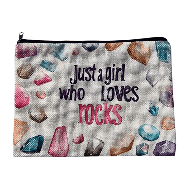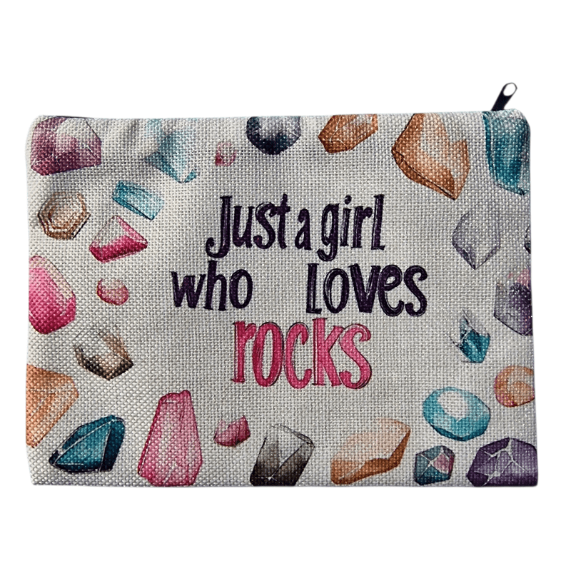Ásvány mintás kozmetikai táska – 14 × 22 cm | „Just a girl who loves rocks”