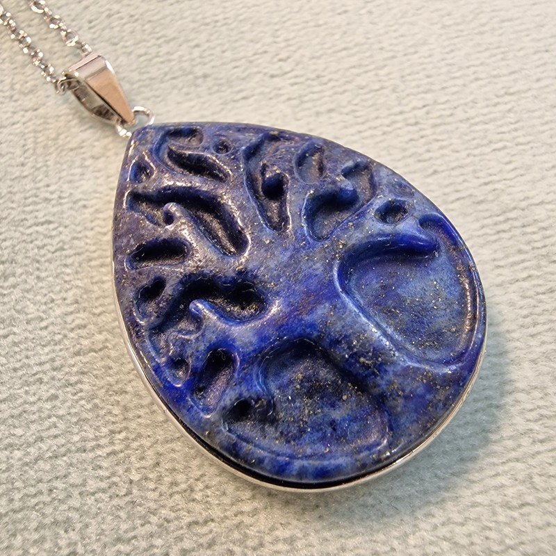 Lapis lazuli életfa nyaklánc – nemesacél lánccal