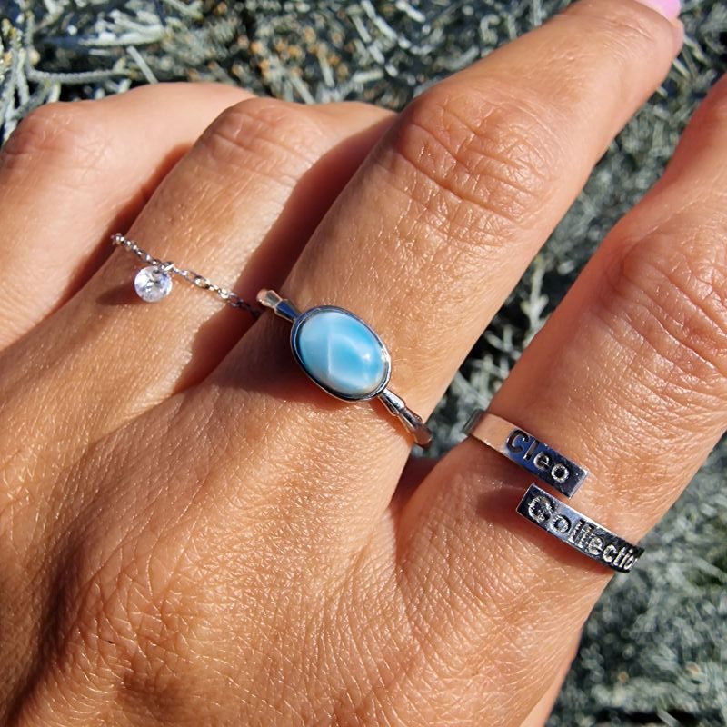 Larimar ásvány gyűrű – Ezüstözött, állítható méret