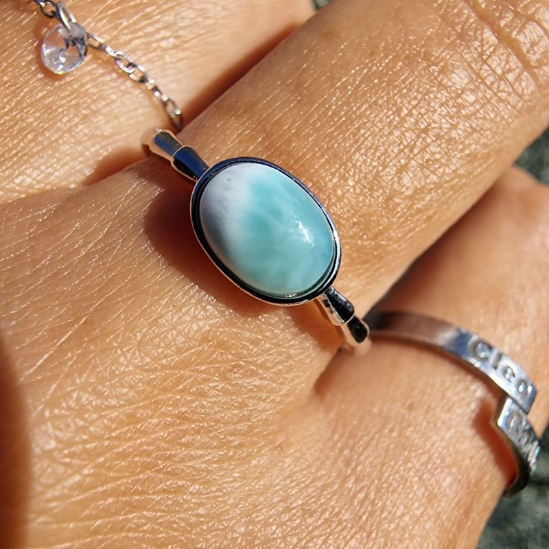 Larimar ásvány gyűrű – Ezüstözött, állítható méret