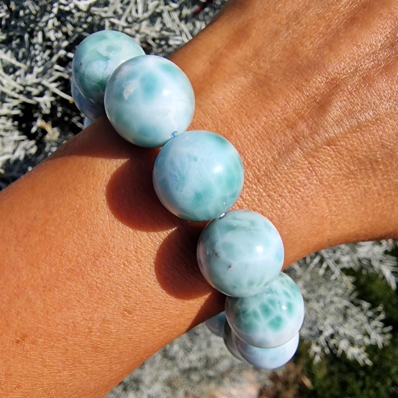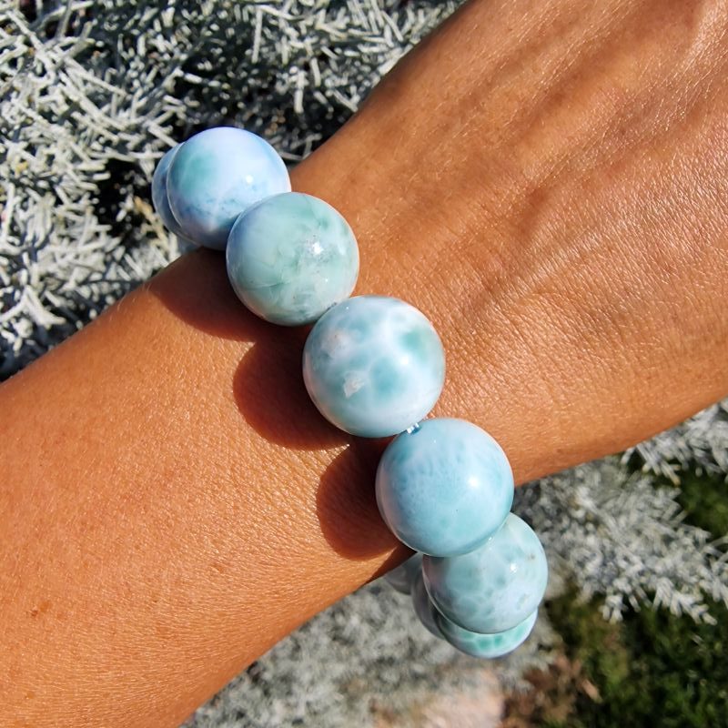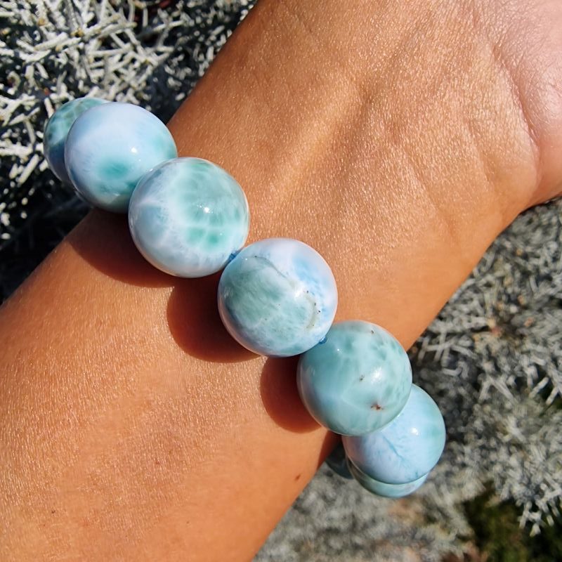 Ez a 14 mm-es larimar ásvány karkötő ideális ajándék különleges alkalmakra: születésnapra, évfordulóra, nőnapra vagy akár saját magad megajándékozására. Ritka ásvány, időtálló szépség és erőteljes jelenlét egyetlen ékszerben.