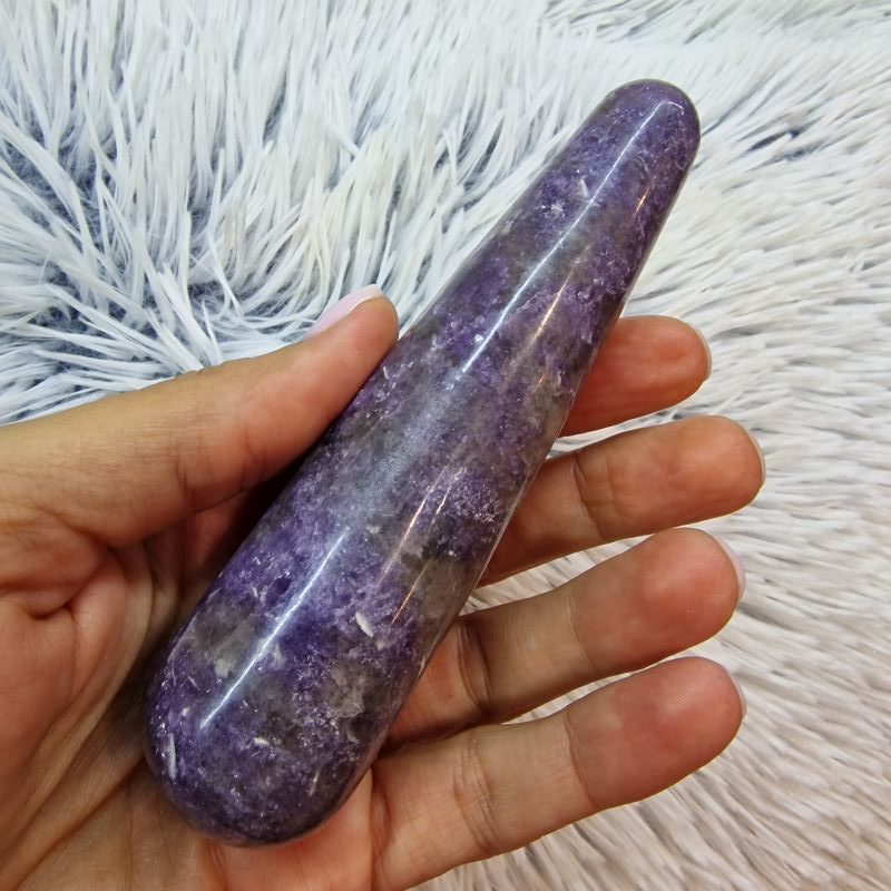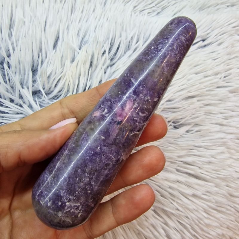 Tapasztald meg a belső nyugalom és lelki tisztulás erejét a lepidolit ásvány masszírozó rúddal! A 12,5 cm-es, természetes lepidolitból készült pálca ideális eszköz stresszoldó masszázshoz, energetikai tisztításhoz és meditációhoz.
