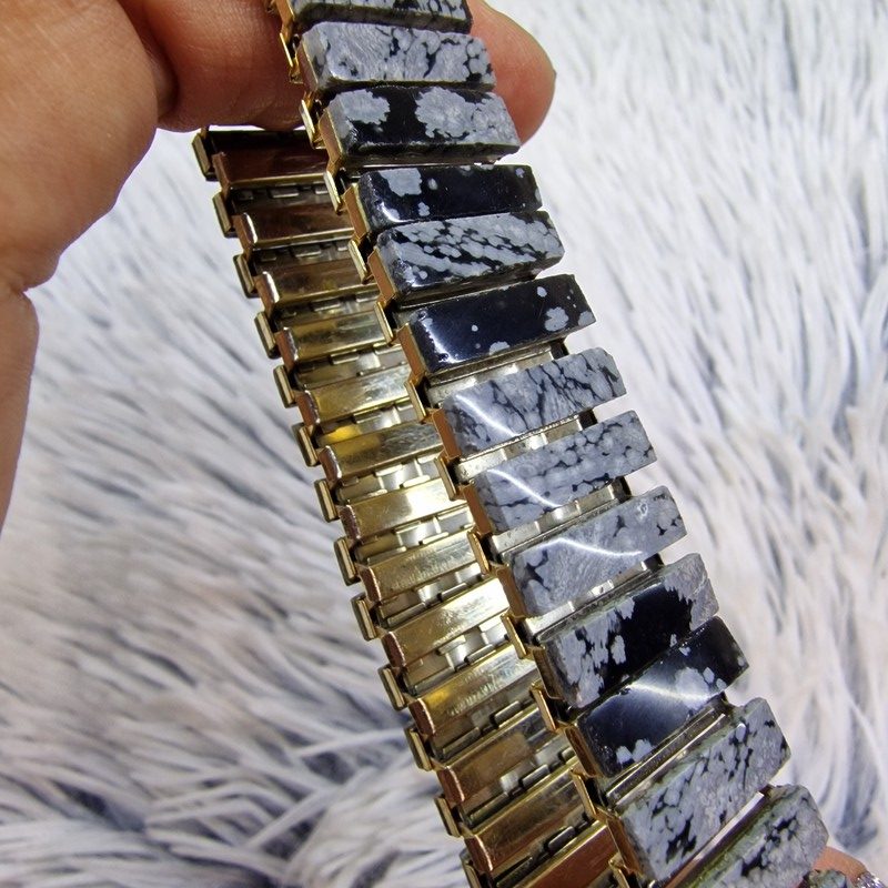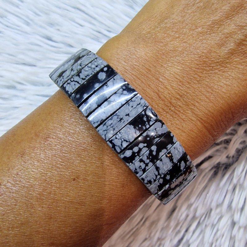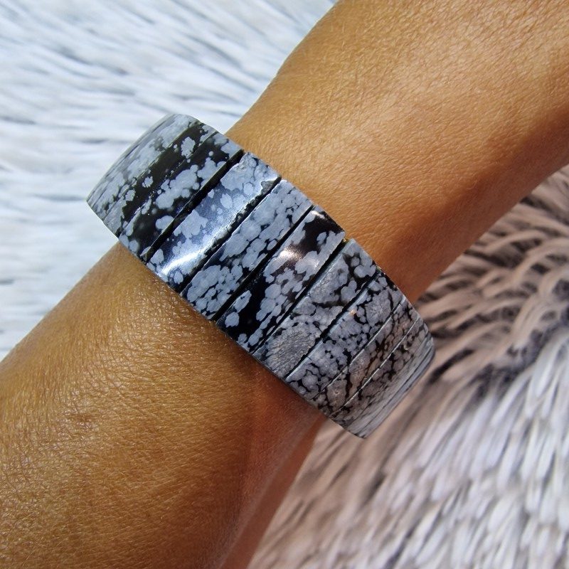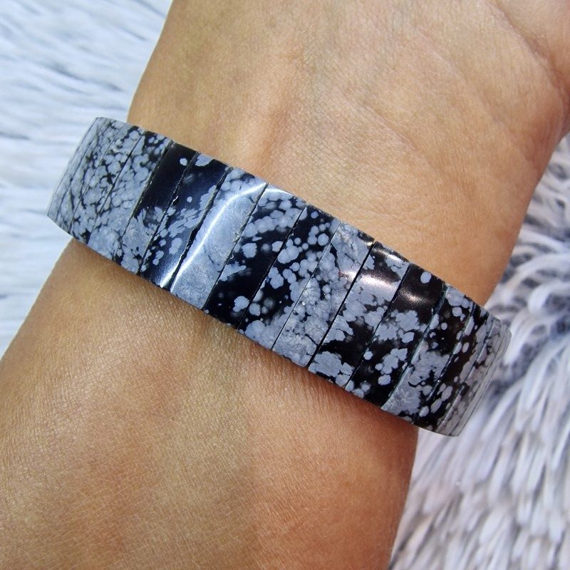 Hópehely obszidián ásvánnyal díszített rugalmas karkötő. 15 mm széles