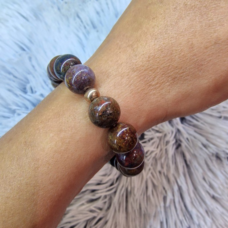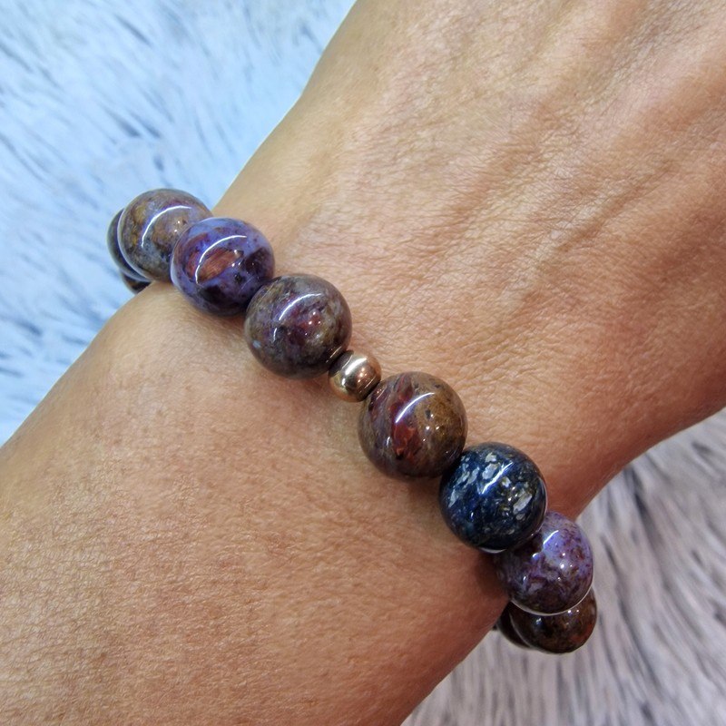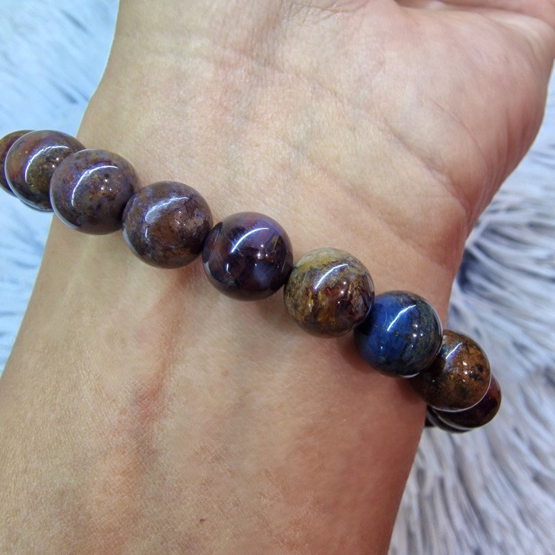 Fedezd fel a pietersit ásvány különleges erejét ezzel a prémium minőségű, 10 mm-es gyöngyökből készült karkötővel! 3 db bronz színű díszítéssel. A pietersit egyedi, kékes-barna árnyalataiban pompázó mintázata minden darabot megismételhetetlenné tesz.