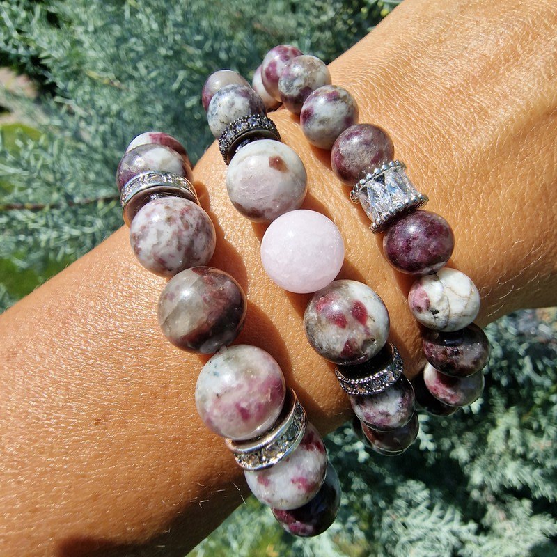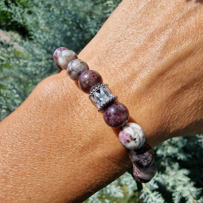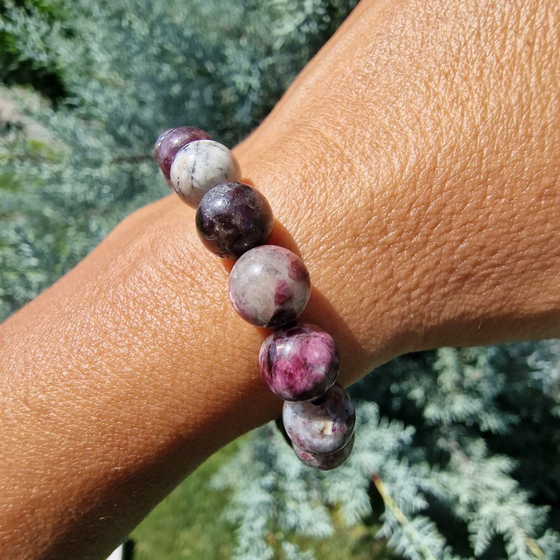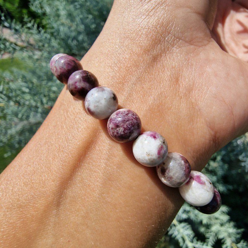 Rubellit ásvány karkötő, 8 mm-es golyóméretekkel.