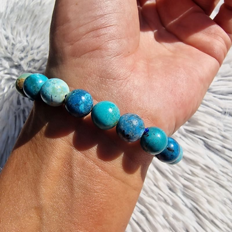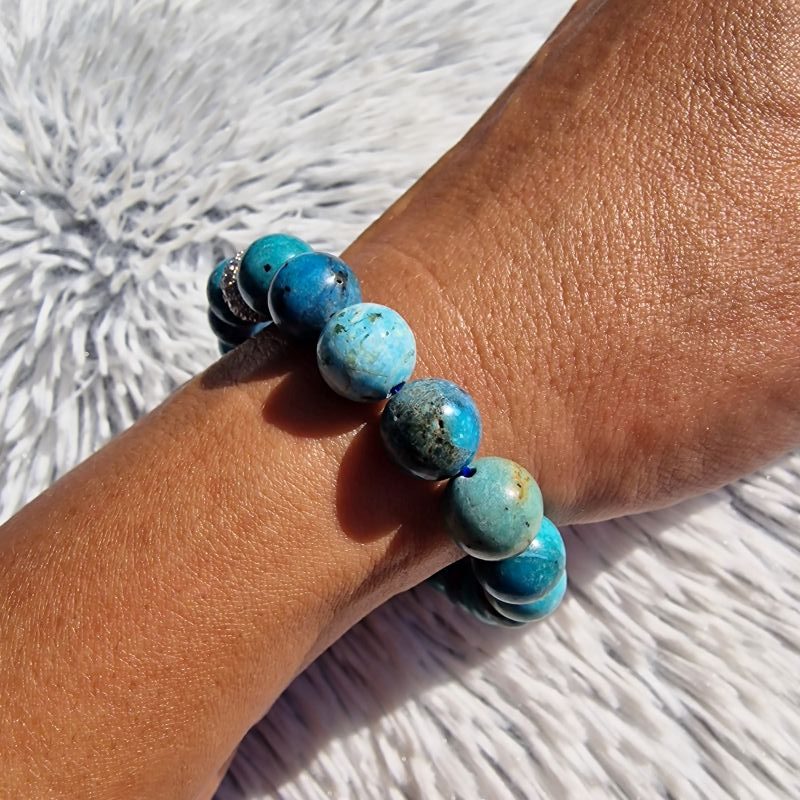 Ez a különleges 10 mm-es shattukit ásvány karkötő a természet lenyűgöző mélykék és türkiz árnyalatait ötvözi elegáns, csillogó részletekkel. A karakteres mintázatú shattukit gyöngyök intenzív kék, zöldes és földszín tónusai igazán egyedi megjelenést biztosítanak, amelyet egy ragyogó cirkongolyó tesz még kifinomultabbá.