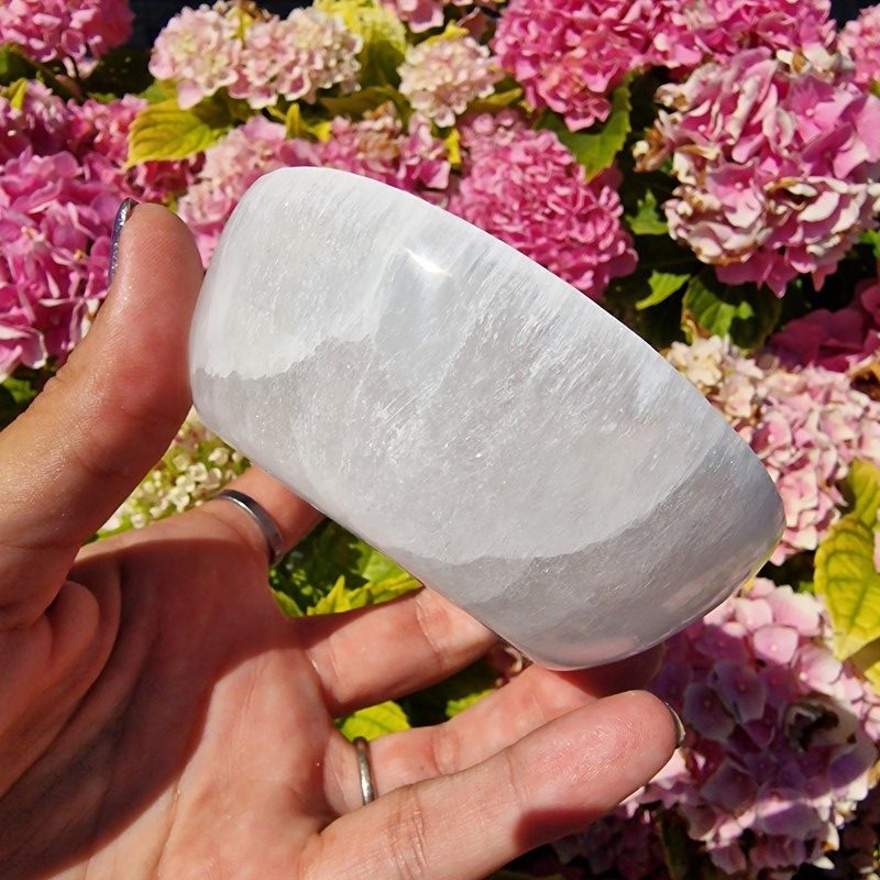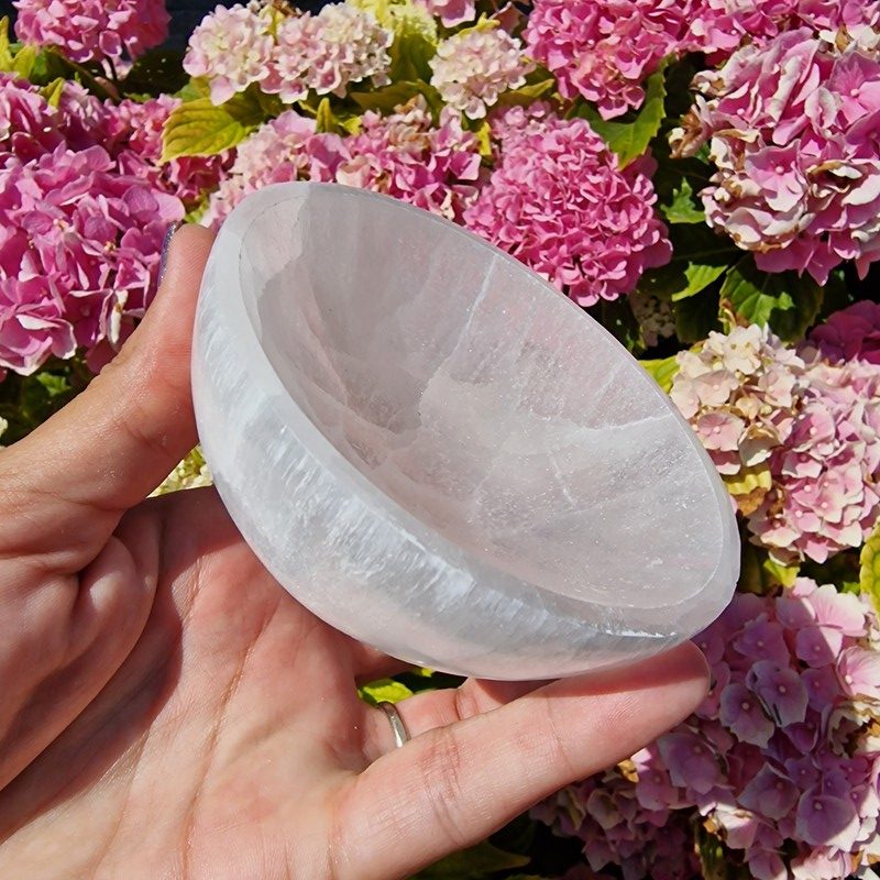 Szelenit ásvány tálka Marokkóból. Megtekinthető videón Instagram oldalunkon.