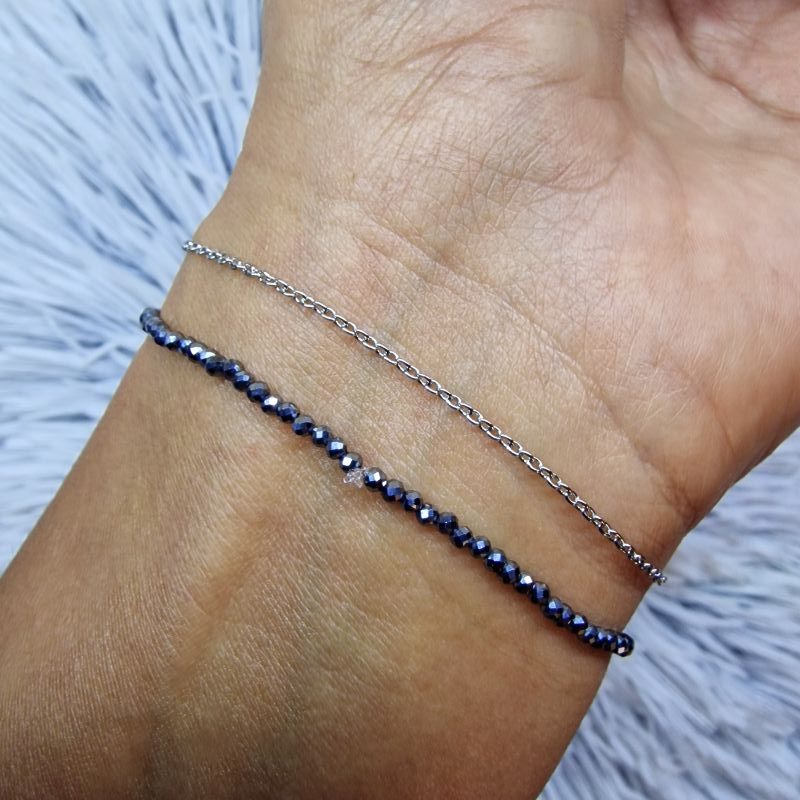 🔹 Szilícium ásvány karkötő – 2 mm-es, fazettált csiszolású szilícium gyöngyökből készült, rugalmas ékszerhuzalra fűzve. A szilícium az erő, az egyensúly és a koncentráció köve, így nemcsak szép, hanem jelentéssel bíró ékszer is.