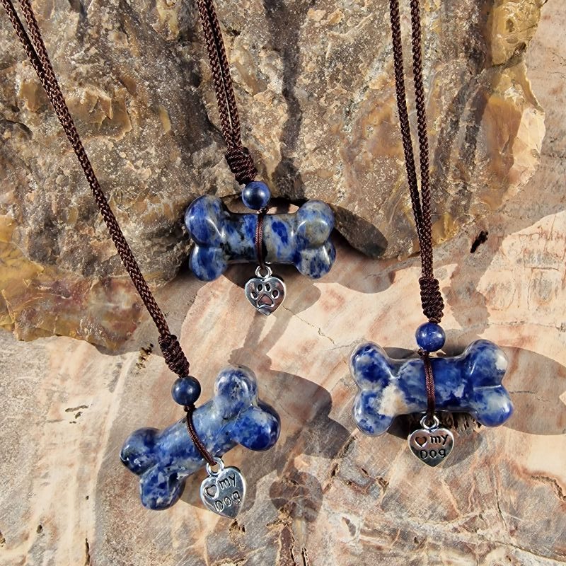 Szodalit csont medálos nyaklánc – kutyaimádóknak 🐾