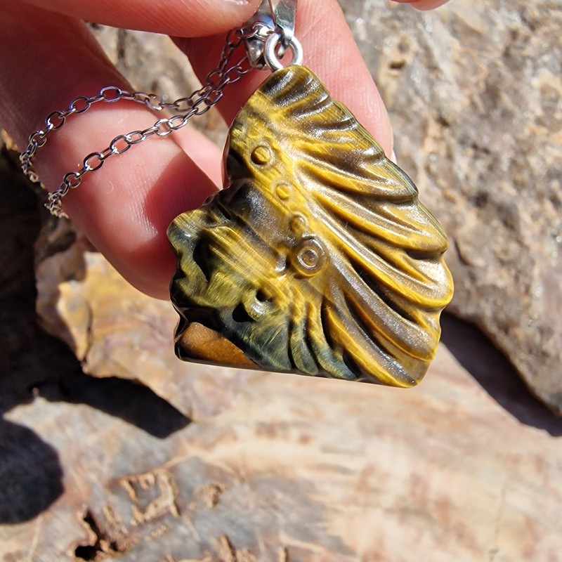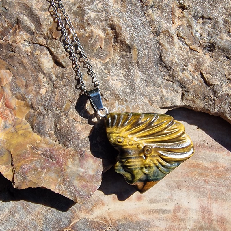 Fedezd fel az ősi bölcsesség és a természethez való kapcsolódás erejét ezzel a különleges tigrisszem indián medálos nyaklánccal!